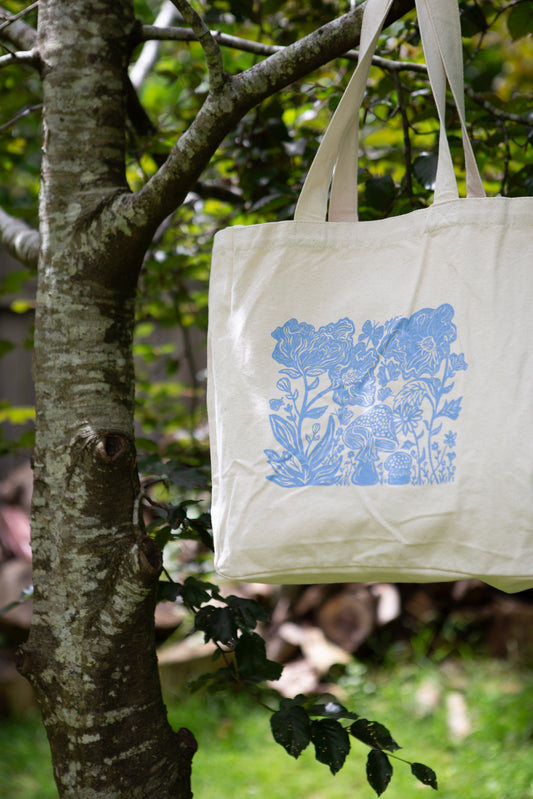 Cornflower Blue Flora Screen-printed Tote