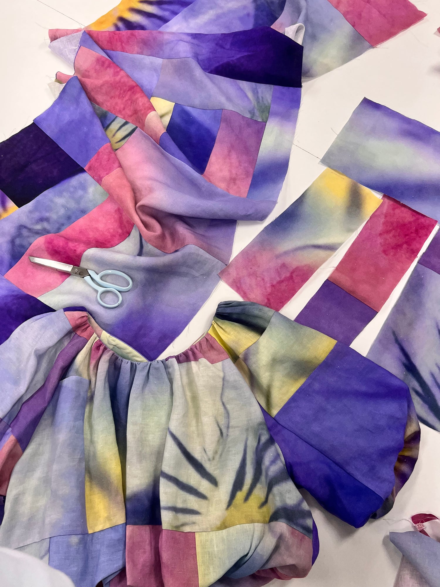 To use all the tiny scraps, we have created our ‘What’s Left Zero Waste’ collection, a celebration and ode to every piece we have made here at GTL as each piece from this collection has a little of every order we’ve ever made and sent out. Beautifully unique, each piece is lovingly sewn and overlocked to create new meterage of fabric so that we have no waste here at Gem The Label.