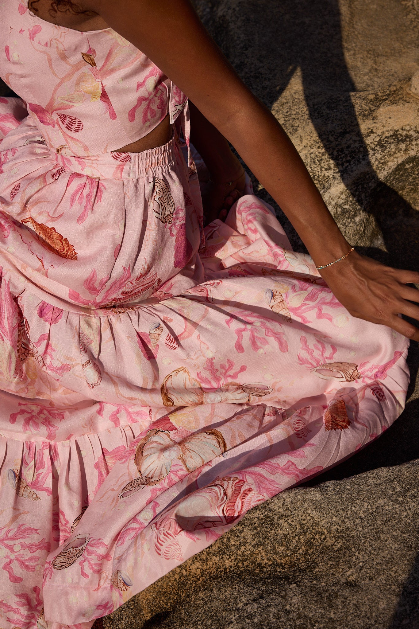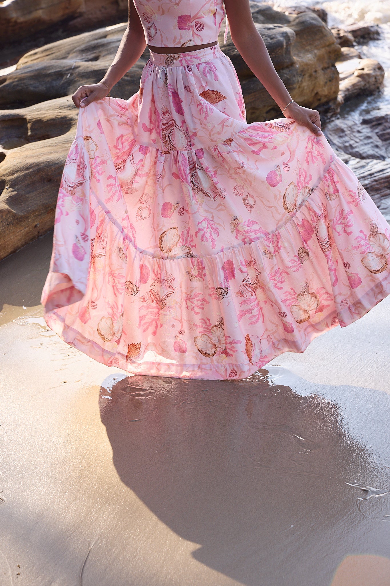 The Claire Tiered Maxi Skirt is made for twirling. The skirt has an elastic back and flat front and finished with deep side pockets. Style with the matching Lottie crop in mermaid trove to complete the look.