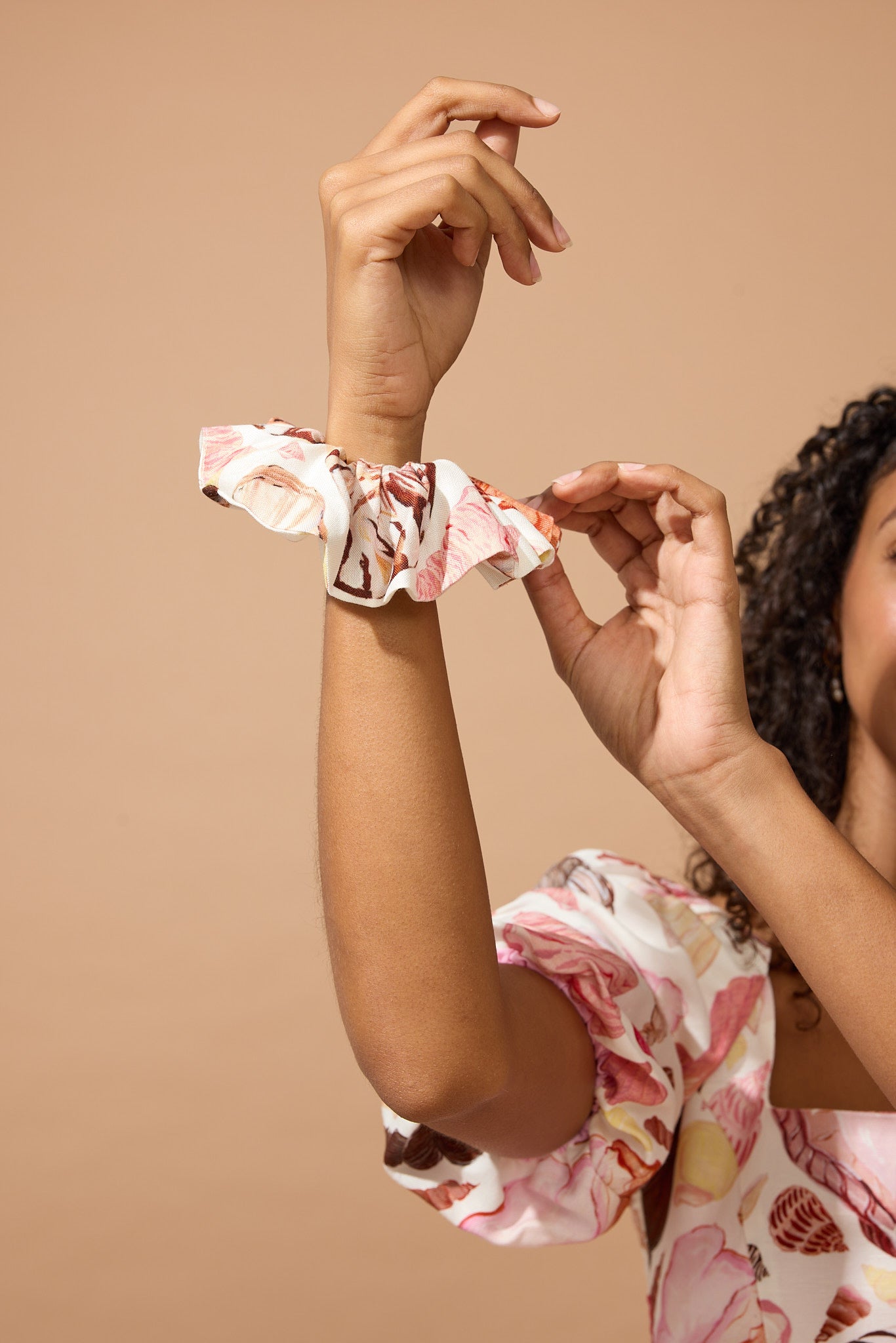 The White Seashell Scrunchie helps this collection be zero waste and is the perfect accessory for any Siren Song look.